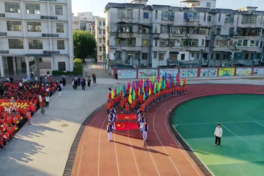 龙城第三小学体育艺术节活动现场,锣鼓声阵阵,醒狮跟着鼓点灵活舞动,快速点燃体育艺术节开场氛围。各班级方阵身着鲜亮的服装依次亮相,并高举创意班牌,喊出“青春无畏 逐梦扬威”“团结拼搏 勇创佳绩”等嘹亮口号;方阵创意展示亮点迭出,尽显学子蓬勃朝气,现场掌声、欢呼声此起彼伏,热闹非凡。