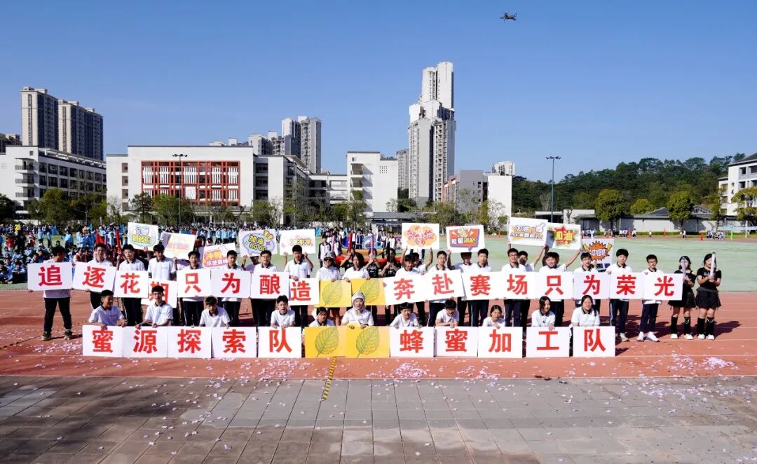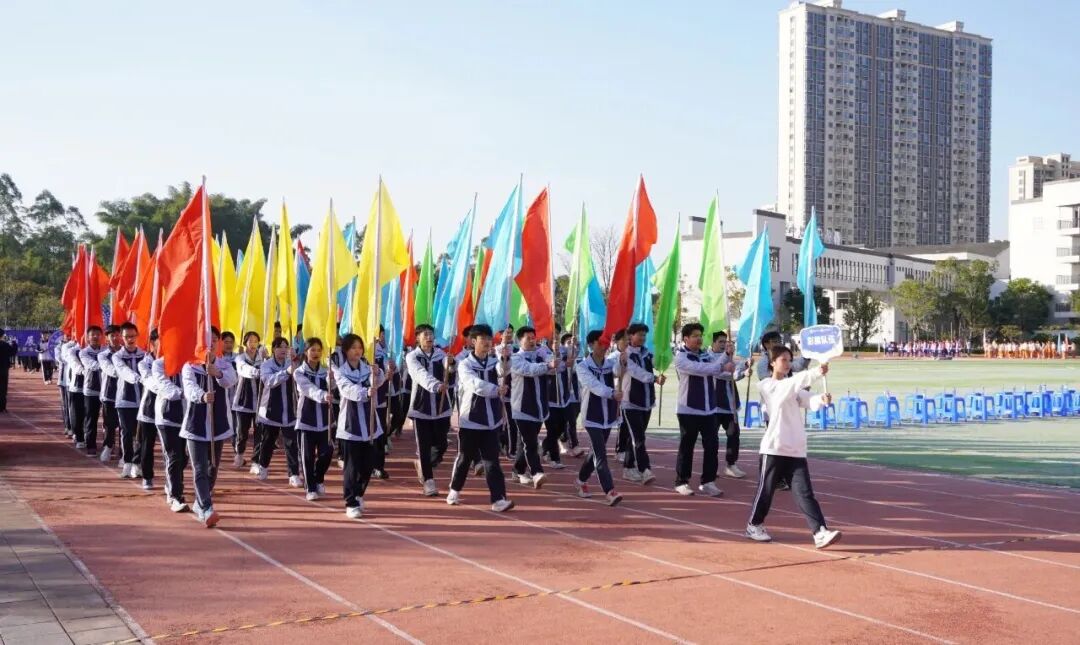 各班学子迈铿锵步伐、喊嘹亮口号,在展演中尽显运动健儿的昂扬斗志与文化传承的赤诚之心。当体育活力与本土文脉深度交融,赛场不仅成为展现学子蓬勃朝气的舞台,更化作生动的“乡土文化课”,彰显新时代少年对家乡文化的热爱与传承之责。