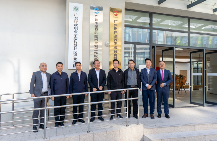 花都区委社会工作部、区民政局、花山镇,以及广州机场建设投资集团、之江七彩云集团、广州市启源养老服务有限公司、花都区振兴社会工作服务中心等政、校、企、社代表共同见证这一深化校地共建、推进社教融合、服务基层治理的标志性项目落地启航。