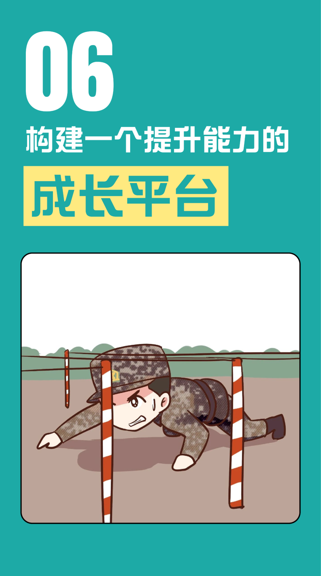 在寒风咆哮中纹丝不动,在炎炎烈日下挥汗如雨,在枪林弹雨中穿梭前行……军营不仅能够锤炼青年人坚韧的意志力,在身体的耐受力、敏捷力、控制力等都有全面的提升,助力大家快速成长。