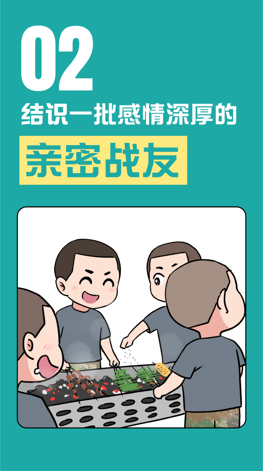 部队是个大家庭,与你并肩作战的战友们都来自五湖四海。从素不相识到同吃一锅饭、同住一间房、同站一班岗,几年的朝夕相处与同甘共苦,会让你收获一批非常靠谱的亲密战友。