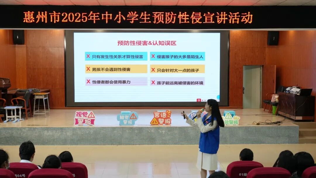 11月27日,中共惠州市委政法委员会、惠州市教育局主办,惠城区教育局、惠州市校园安全教育与管理服务协会承办的惠州市2025年中小学生预防性侵专题宣讲活动在惠州市中建麦绍棠学校开讲。本次专题宣讲活动以“预防性侵 呵护成长”为主题,将走进惠州31所重点中小学,通过讲座+情景剧的形式为未成年人筑牢身心安全屏障。