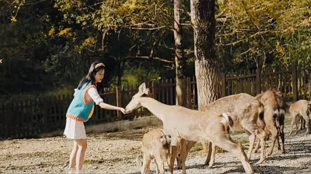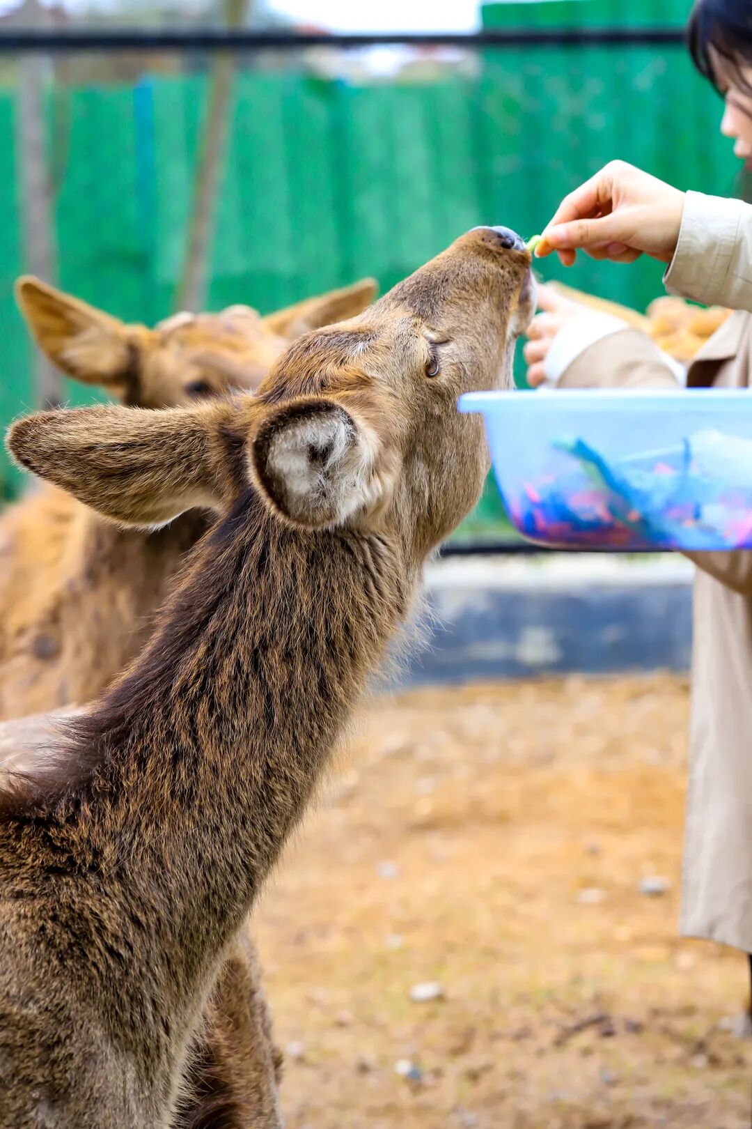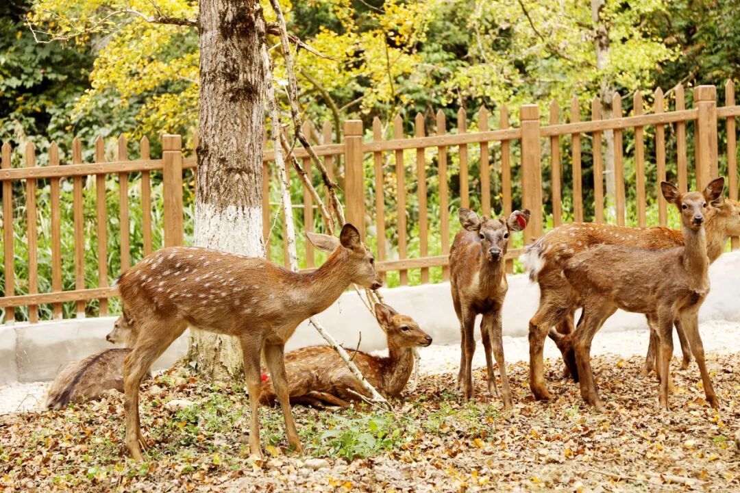 周边金黄的树叶随风飘落,小鹿在林间穿梭跳跃,阳光透过枝叶洒在它们身上,构成一幅绝美的森系画卷。在这里,你可以静静地坐在一旁,看着小鹿悠然活动,感受人与自然相融的惬意,所有的烦恼都会被这片温柔治愈。