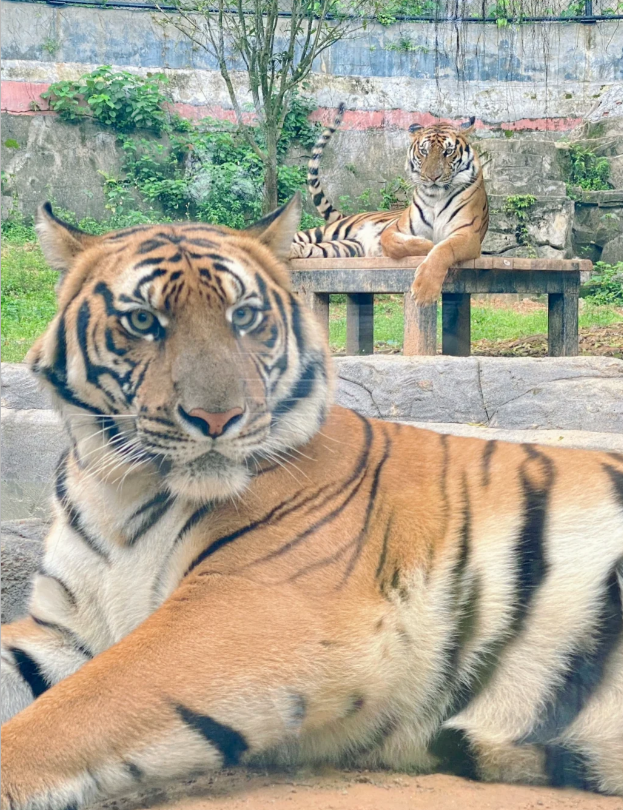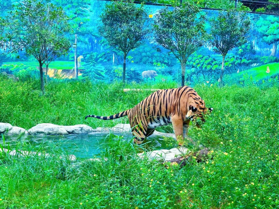 走进这里,你能听到华南虎低沉的 roar,看到它们在林间踱步、纵身跳跃的矫健身姿,每一个动作都尽显“百兽之王”的威严。