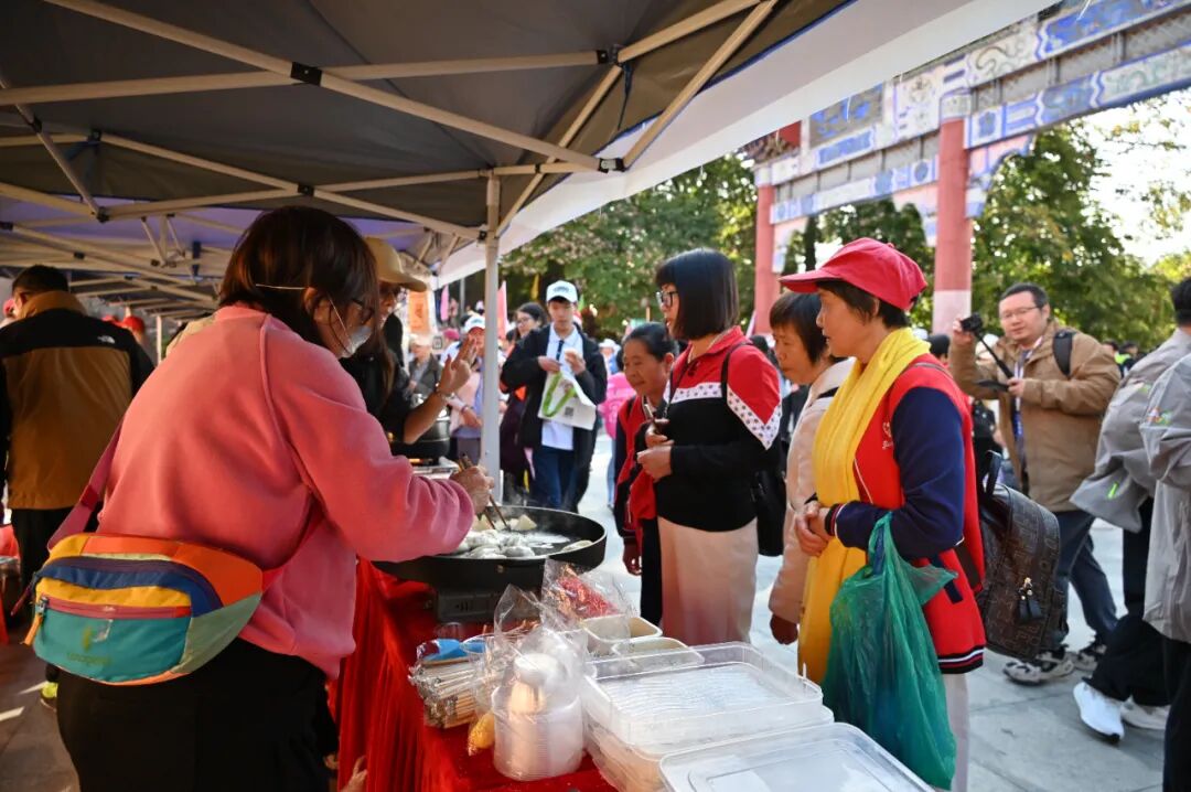 贤令山登山活动现场,阳山精心打造文化市集、非遗展示区等多元特色区域,成为活动现场的亮眼风景线,吸引了大批市民群众与登山徒步爱好者驻足体验、互动打卡。在特色美食体验区,七拱豆腐、传统炸糍粑、小江牛杂等极具阳山地域特色的风味美食悉数亮相,现场设置免费试吃环节,让游客在登山途中感受运动激情与自然野趣的同时,一站式品味阳山舌尖风味、领略本土饮食文化魅力。