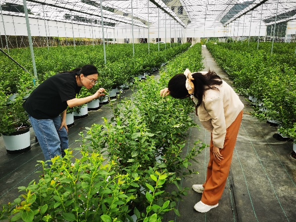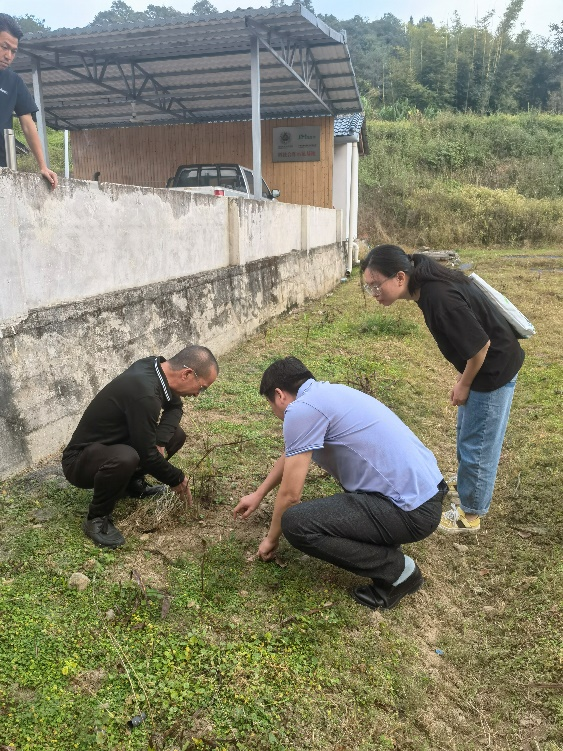 在程官村蓝莓大棚种植基地,团队喷施了有机硒功能制剂,并详细调查了蓝莓施用后的生长状况,记录蓝莓开花、坐果、膨果等数据,科学评估有机硒对蓝莓品质和产量的潜在影响,为优化种植技术提供依据。在程坑三华李基地,团队开展了清园、剪枝和冬季施肥的现场指导工作,帮助农户掌握科学的果园管理方法,确保果树健康越冬,为来年丰收奠定坚实基础。在高场村白芨种植基地,团队重点察看了病害情况以及使用的农药配方,并与技术人员深入探讨了综合防治策略。同时,双方还就植物营养技术如何提升白芨的功能价值进行了交流,旨在提高药材的市场竞争力。