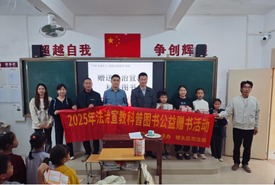坡头区司法局向学校赠送了民法典、网络安全、防暴反邪、卫生安全等法治科普图书60本;派发宪法、民法典等各类法治宣传资料100余份;并为同学们赠送了一批实用的学习文具。