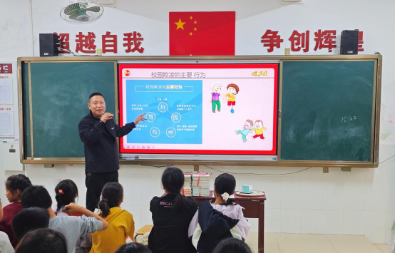 村(社区)法律顾问、广东海东律师事务所律师陈泽义聚焦预防校园欺凌主题,以通俗易懂的语言、贴近生活的案例,从“法律是什么”“不良行为与犯罪的距离”“如何预防和应对校园欺凌”“青少年权益保护”等四个维度进行了深入浅出的讲解,引导同学们明确行为边界,树立法治观念,增强自我保护意识和能力。讲解过程中穿插的法治知识有奖问答环节,极大地激发了同学们的参与热情,大家争先恐后举手应答,现场气氛活跃热烈,法治种子在欢声笑语中悄然播撒。
