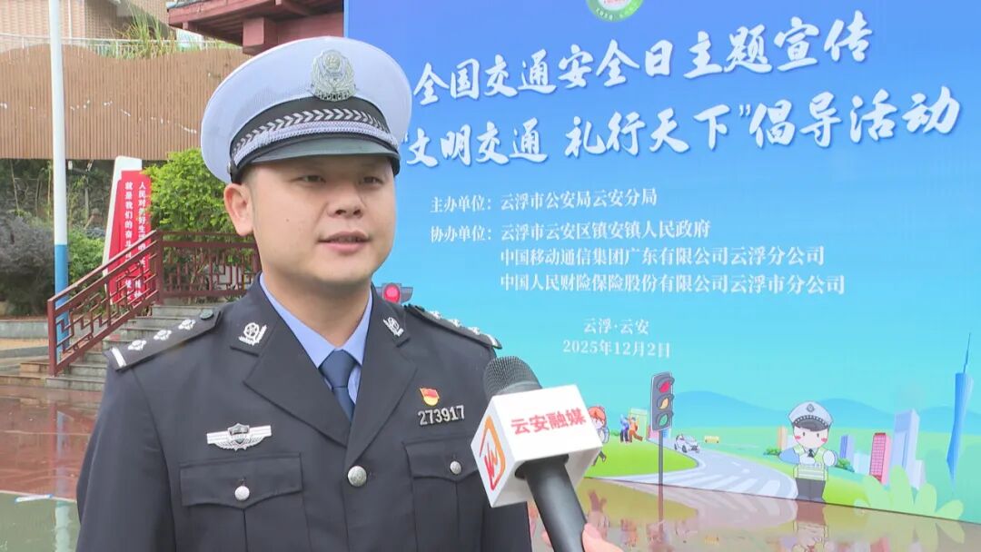 市公安局云安分局交通警察大队教导员 叶嘉浩:我们希望通过这种贴近群众的宣传方式,让交通安全知识真正入脑入心。下一步我们将持续开展交通安全宣传活动,引导广大群众自觉做文明交通的践行者和倡导者,共同筑牢道路交通安全防线。