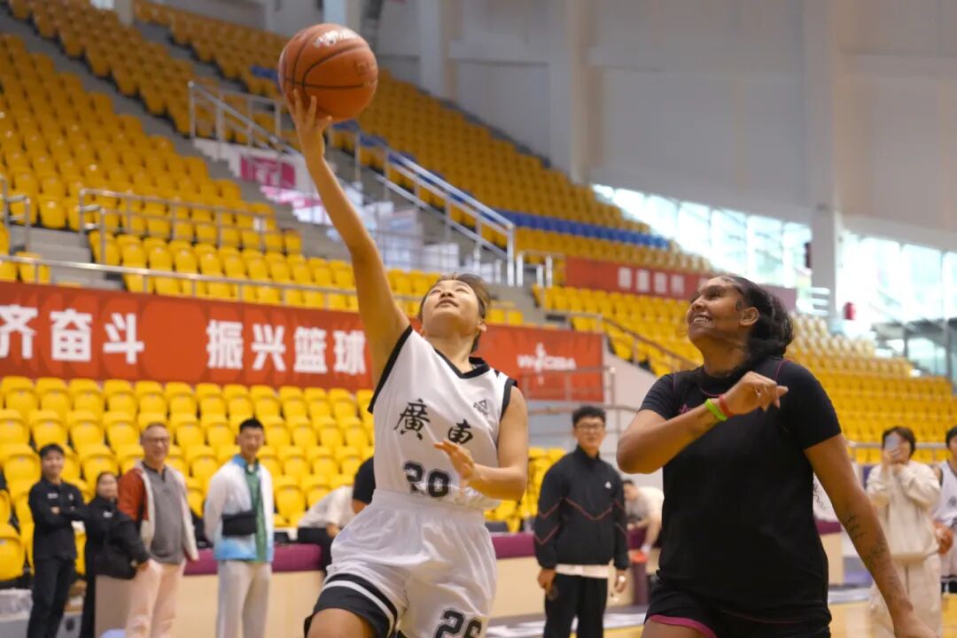 随后的全场友谊赛,双方队员混编组队,在真刀真枪的切磋中进一步交融。广东女篮在进攻中主动创造机会,鼓励聋人球员发挥投篮与突破优势;聋人篮球队则凭借快速的传导球和紧密防守赢得阵阵掌声。每一次精妙助攻后的会心一笑,都让场馆内的温度持续升高,一份彼此尊重、相互欣赏、共同享受篮球快乐的情谊在快速生长。广东残特奥会聋人女子篮球队队员李洁玲表示:“这是我们期待已久的机会,通过与广东女队的交流,我们学到了很多专业篮球技术,也感受到满满的温暖与鼓励。”