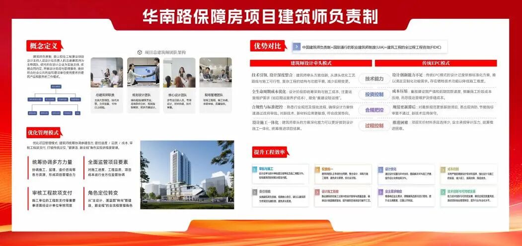 推行建筑师负责制,以专业引领贯穿全过程。针对建设项目设计与施工衔接不紧密、实施过程中设计调整较多、设计意图与施工存在偏差等问题,花都区在全市率先出台区级《建筑师负责制实施导则(试行)》,选取华南路保障性住房项目作为试点之一,发挥建筑师在规划设计、报批报建、施工管理、竣工验收等全流程中的技术主导作用,提升工程品质与管理效能。