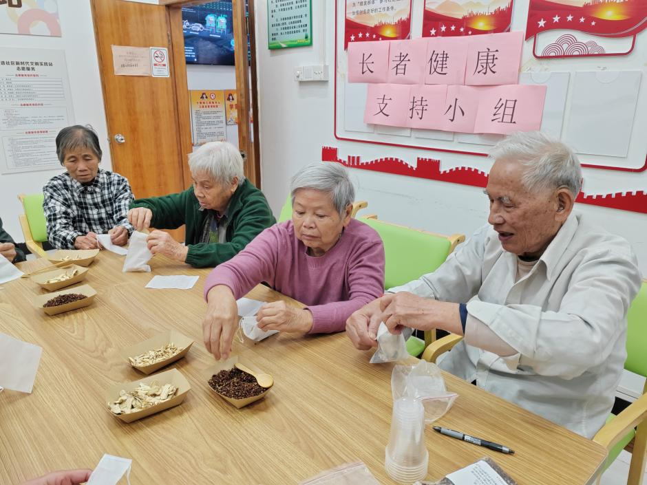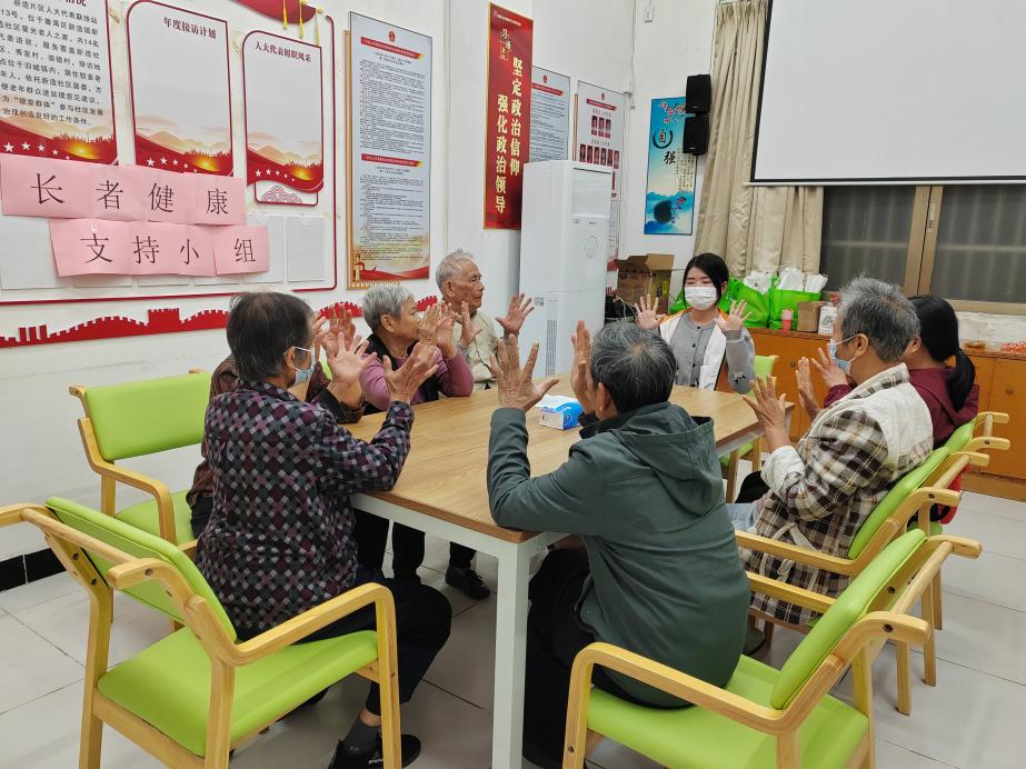 近日,在番禺区新造镇公共卫生委员会的指导下,新造镇社工站在新造社区星光老年之家开展长者健康支持小组活动。活动通过科普讲解、互动游戏、健康实操等形式,帮助长者在轻松愉快的氛围中学习健康知识、交流养生经验,累计服务42人次。