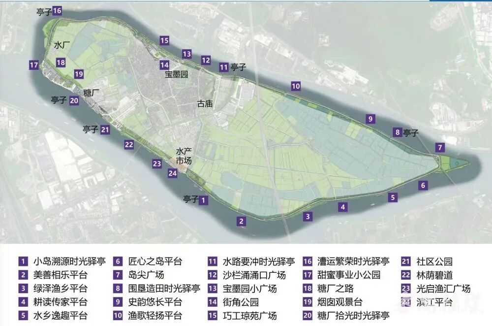 更令人惊喜的是,建设者们依据紫坭岛的地势风貌与文化特色,打造了四大主题路段——