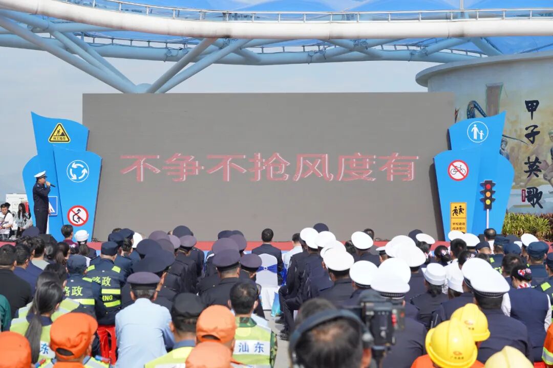 为进一步加强文明礼让文化建设,提高广大交通参与者的文明出行意识,引领汕尾文明出行新风尚,共同营造和谐畅通的道路交通环境,12月2日上午,汕尾市公安局会同城区人民政府、市委宣传部、市教育局、市司法局、市交通运输局、市应急管理局、团市委、高速公路公司、中国邮政汕尾分公司等部门在沈海高速公路长沙湾服务区举行第十四个“全国交通安全日”主题宣传活动暨交通安全宣传月启动仪式。汕尾市副市长、市公安局局长毛金成,市政府副秘书长林智育等出席活动并共同宣布活动启动。