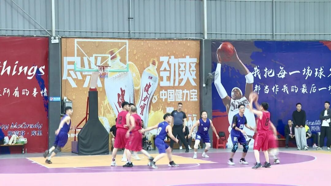 开幕式后,“奋进杯”篮球赛随即开赛,球员们在球场上激烈拼抢、默契配合,精彩的攻防赢得观众阵阵喝彩,赛场氛围热烈。