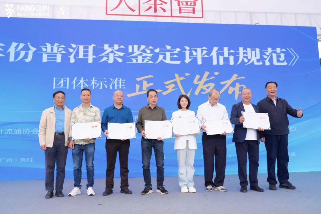 尤为值得一提的是,本届茶文化节主办单位广州茶业协会顺应市场发展趋势,携手云南茶叶流通协会等权威机构,共同制定了《年份普洱茶鉴定评估规范》,并在开幕式上正式发布。这一标准的出台,填补了年份普洱茶鉴定评估团体标准领域的空白,为规范市场秩序、保障消费者权益、促进产业健康发展提供了重要技术支撑。业内专家认为,该标准的推广应用,必将对年份普洱茶产业的规范化、专业化发展产生深远影响,为构建老茶产业新生态奠定坚实基础。