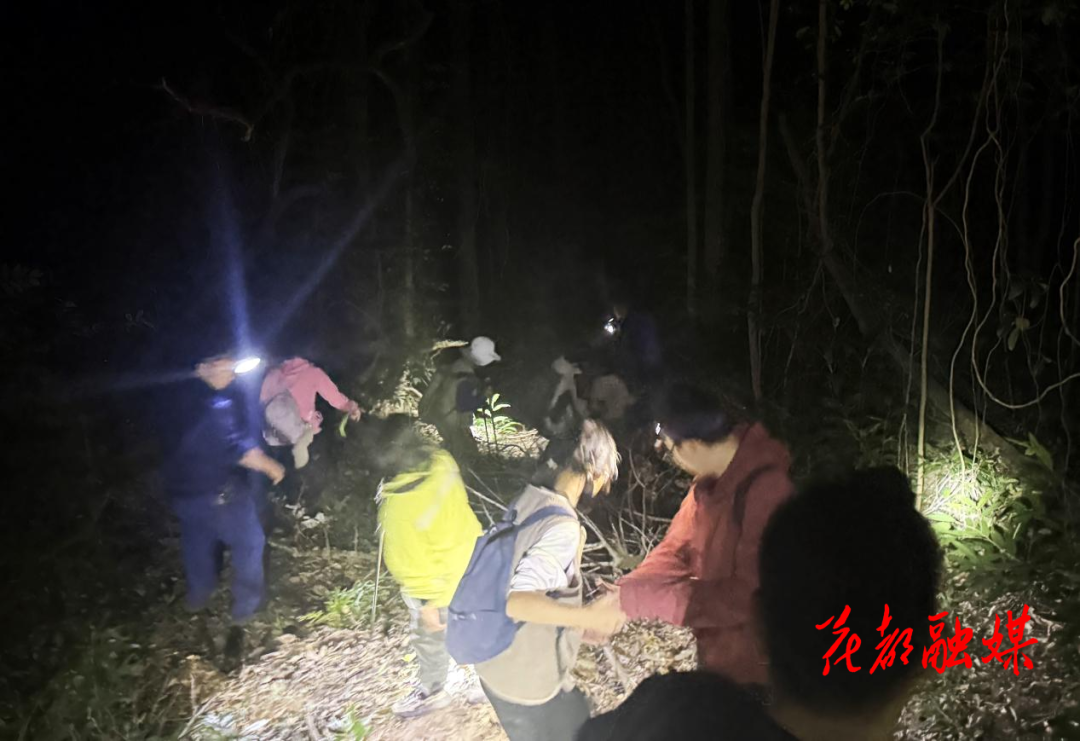 晚上约7时10分,救援队伍接到报警后,火速赶赴现场处置,第一时间利用无人机空中搜寻、与被困人员共享定位等科学手段,精准锁定人员位置。随后,组织救援力量登山展开搜寻行动。通过高效协同作战,救援人员仅用半小时便成功找到全部迷路人员,随即小心护送被困人员安全下山,及时安排车辆完成转移,经检查,所有人员身体状况良好。