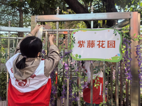 12月4日,同德街社工站联合快乐童盟、益行两支志愿服务队,组织儿童青少年开展“紫藤花园换新颜”行动,共同培土浇水,用劳动为社区添绿,让环境美化与邻里互助同步发生。