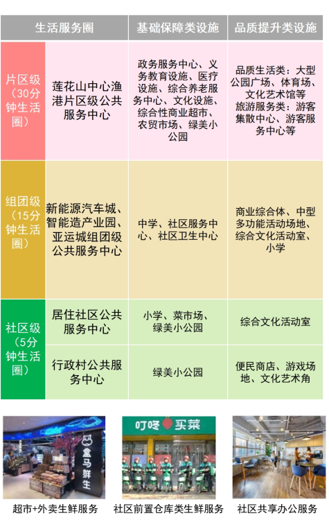 一座宜居宜业的城镇,不仅要有产业的硬实力,更要有生活的软支撑。在石楼社区、莲花山社区、裕丰村、赤岗村、联围村等人口密集的中部城区,以3万-10万常住服务人口、800米~1200米为服务半径构建“15分钟全龄友好生活圈”。