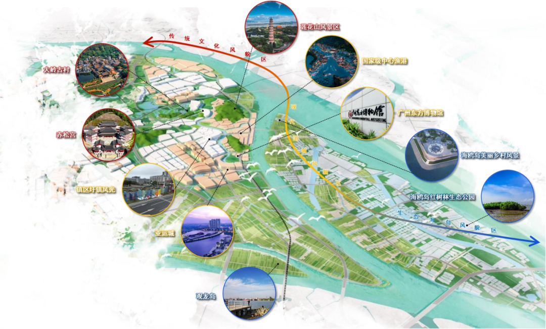 同时,在风貌营造方面,“石楼十景”串联石楼大岭古村、莲花山风景区、赤松宫、国家级中心渔港、亚运城、广州东方博物馆、海鸥岛、观龙岛等各大文化、景观、旅游等资源,并结合“七个一”美丽圩镇建设成果,展现岭南水乡与滨海城市的双重韵味。