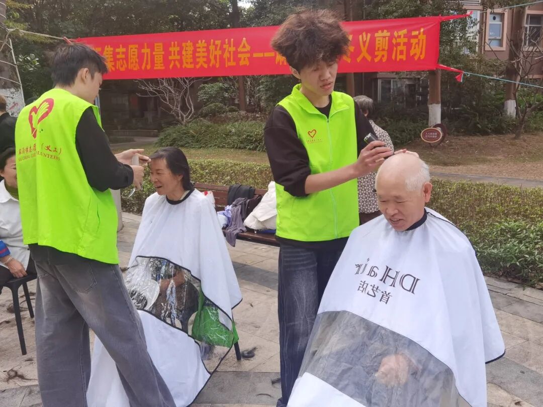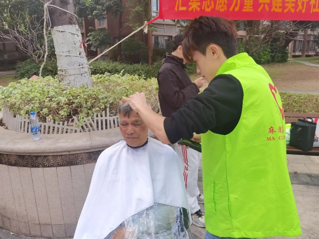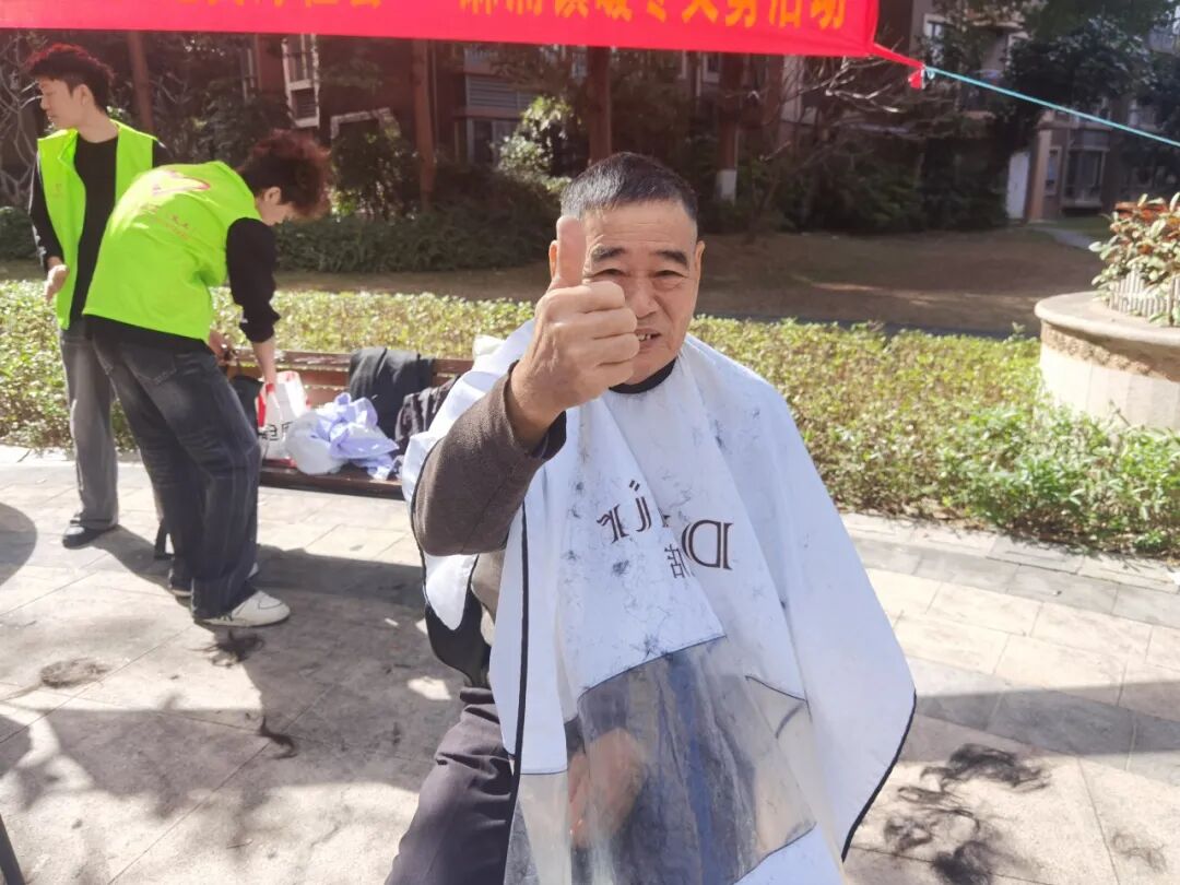 “阿叔,您想剪短一点还是留一点?”“阿婆,您的头发要梳得整齐些,这样看着更精神!”……活动中,志愿者们一边娴熟地梳理、修剪发丝,一边轻声询问居民的需求,还不时与大家唠唠家常。剪刀开合间,纷飞的发丝落下,居民们的面容也愈发清爽精神。