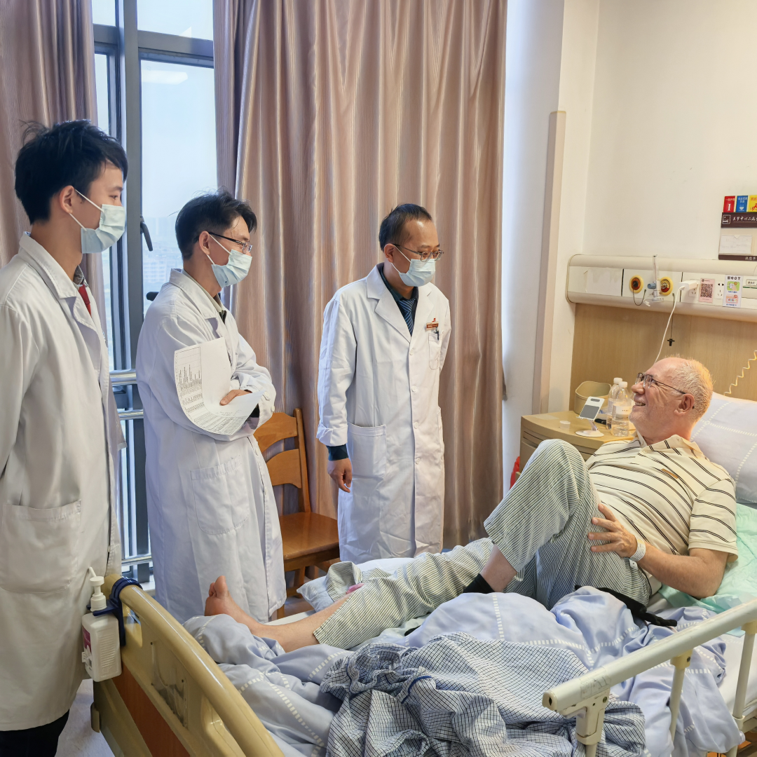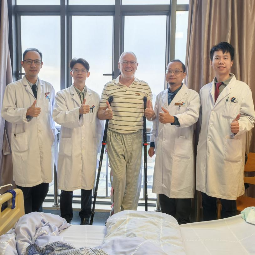 得益于微创手术创伤小、疼痛轻、康复快的优势,结合中西医加速康复方案,Jean先生术后第一天便在指导下扶拐下地行走。他高兴地表示:“那扇‘生锈的门’终于不痛了,微创技术真令人惊叹!”
