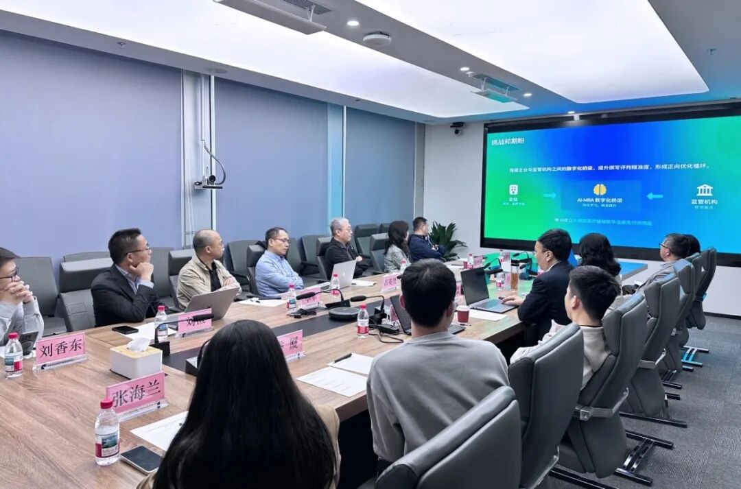 交流会上,百盈云创研发负责人全面展示了该系统的技术框架、核心逻辑及模拟应用场景,介绍系统在知识图谱构建、法规适配算法、文本生成引擎、合规审查规格等方面的创新设计,对系统在提升申报效率、降低合规风险方面的巨大潜力获得了现场嘉宾的高度关注。