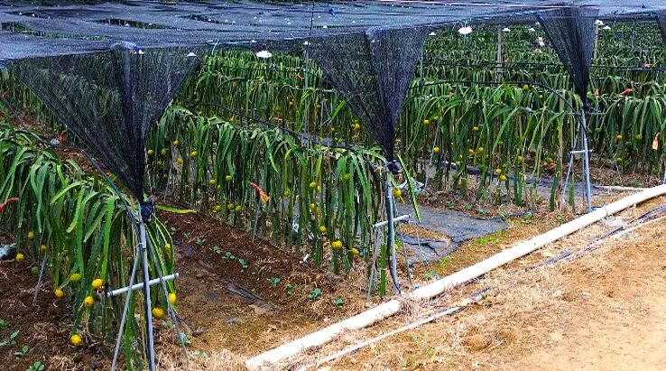 据了解,该基地占地60多亩,今年亩产1250—1500公斤。燕窝火龙果因其果肉结构呈细丝状、滑如燕窝,又富含植物性白蛋白芨花青素,被称为“燕窝果”,是水果中奢侈品,深受消费者喜爱。
