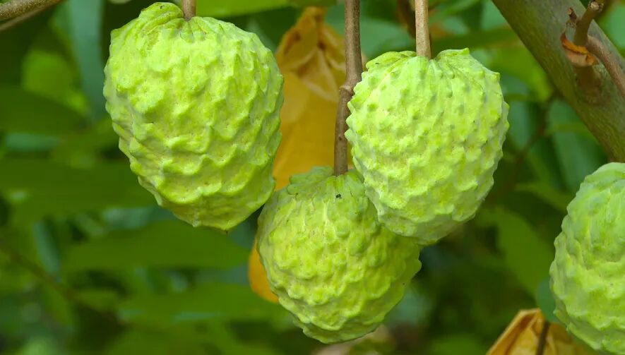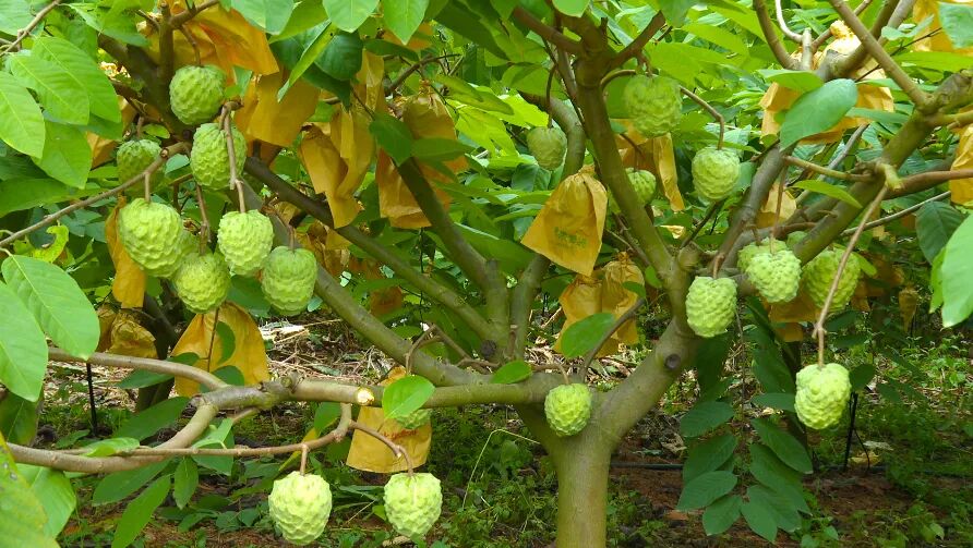 释迦果,又称番荔枝,其果肉乳白,口感似冰淇淋般香甜。基地种植的牛奶释迦果、凤梨释迦果、榴莲释迦果因其独特口感,备受消费者青睐。