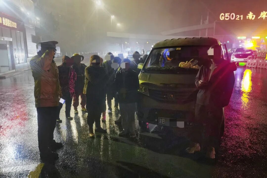 驾驶人李某讲,为图方便省成本,便让10名务工人员挤进车,心存“深夜查车少”侥幸上路,不料欲进入高速被查获。