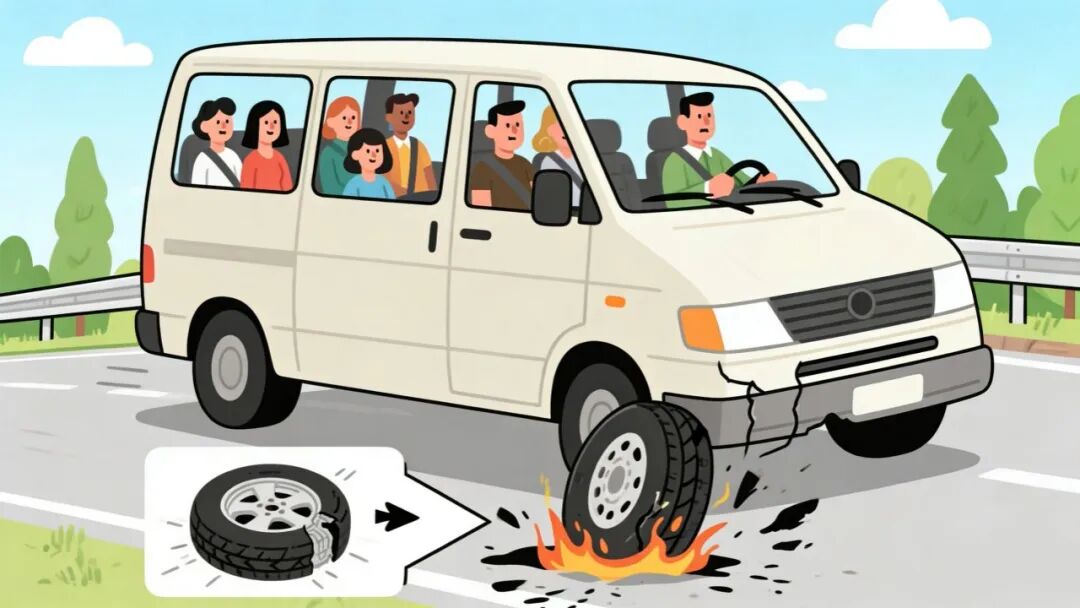 面包车设计承载有限,超员加重车架、轮胎负荷,易引发爆胎、车架变形等机械问题。