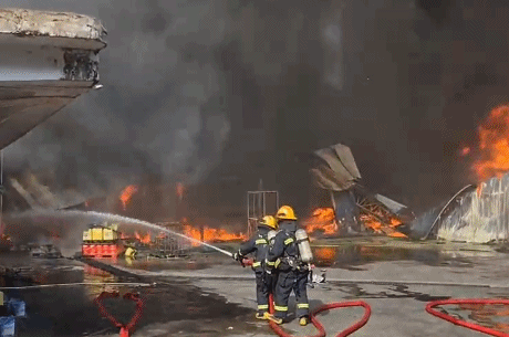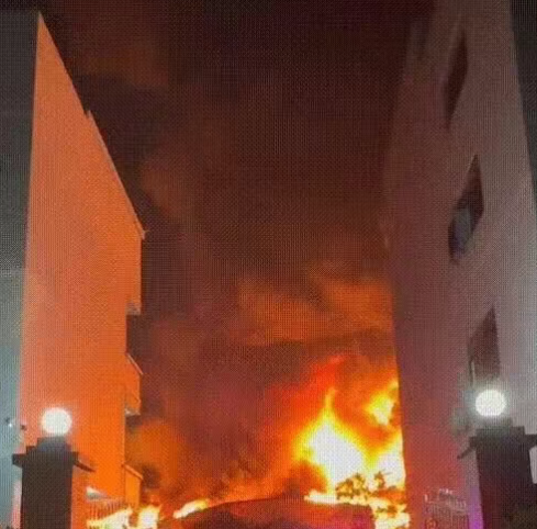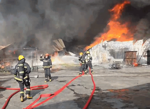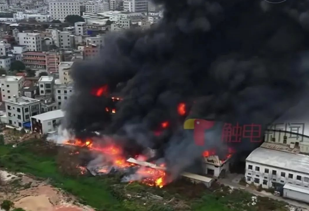 2025年2月23日下午,广东湛江一联排厂房起火,大火伴随着强风迅速扩散,火舌高达数十米,所幸扑救及时,未造成人员伤亡。