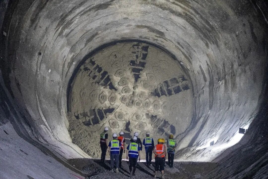 随着盾构机刀盘破岩而出,隧道成功贯通。