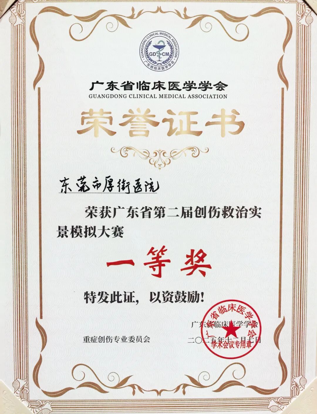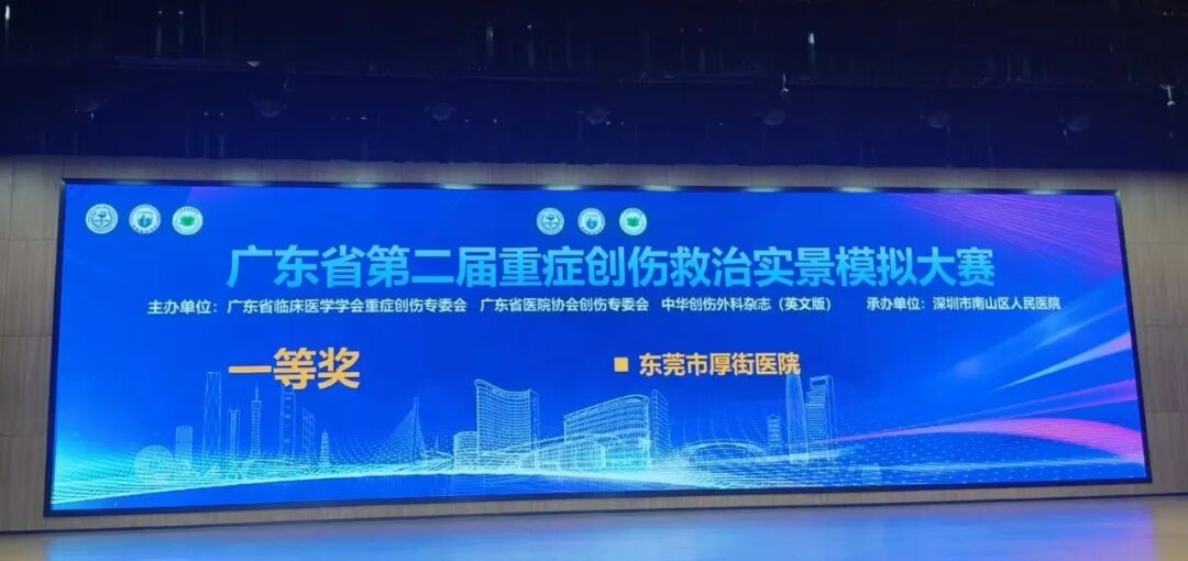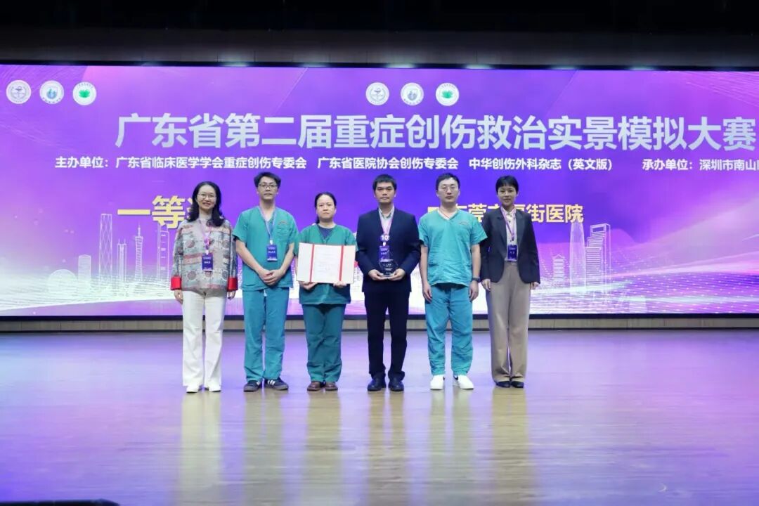 广东省第二届重症创伤救治实景模拟大赛在深圳举办,我院获得实际病例模拟救治环节分数第一、综合得分第一,斩获比赛一等奖的佳绩。