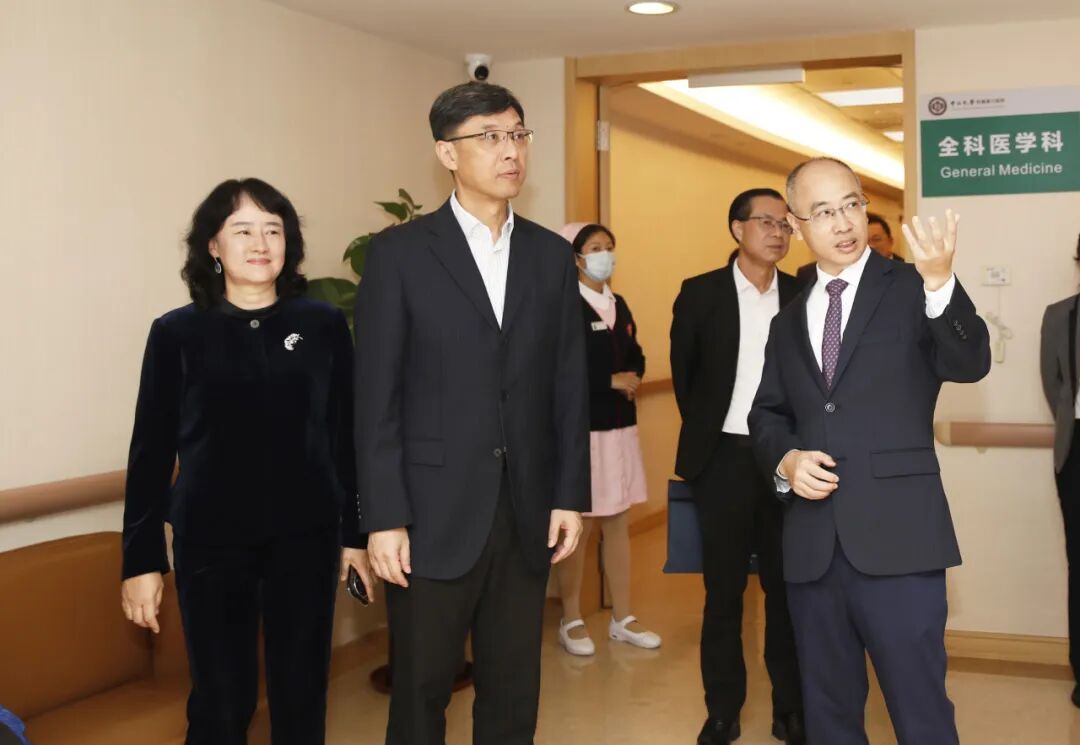 刘承功书记在座谈时高度评价了我院党建引领医院高质量发展的扎实成效。他指出,医院恪守“守真”院训,坚守“大专科、强综合”特色发展路径,立足消化系统疾病诊治优势,在医疗技术革新、教学科研协同、人才自主培养、管理体系优化等方面形成了良好的发展基础与鲜明的文化品牌,并对医院创新“党建+业务”双融双促模式,推动基层党建闭环管理,实施干部人才一体化培养,推动年轻骨干在一线挑重担扛大梁,为医院高质量发展注入持续动力给予充分肯定。未来,他希望医院进一步强化政治担当,紧密对接国家重大战略与粤港澳大湾区发展需求;深化协同创新,依托大学综合学科优势,持续推动学科交叉、促进医学转化、创新医学教育,聚力打造具有中大特色的医学高峰和人才高地。他勉励医院持之以恒推进全面从严治党,特色驱动赋能高质量发展,为学校加快建设中国特色世界一流大学、为推动强国建设和中国式现代化作出六院贡献。