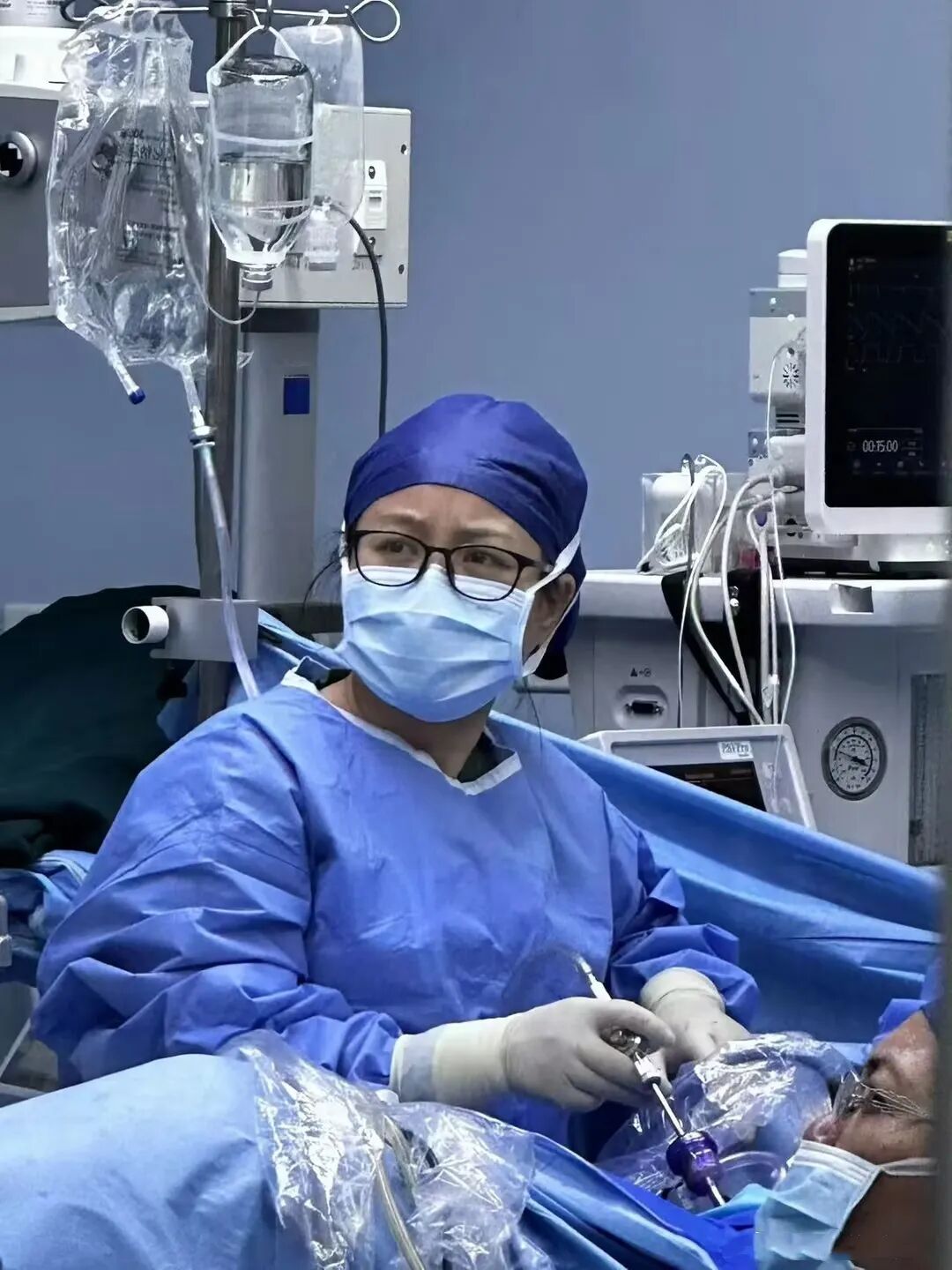 时间刻不容缓,医院迅速启动应急预案,妇一科、麻醉科、手术室医护人员火速集结。在征得家属知情同意后,团队敲定急诊腹腔镜探查术方案。患者被快速转运至手术室后,麻醉医师团队沉着应对,即刻建立中心静脉双通道、实施气管插管,同时配备血液回输机。