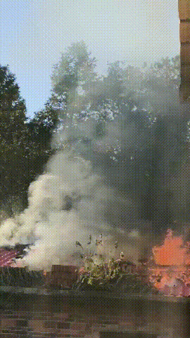 起火房屋后堆放着大量柴火