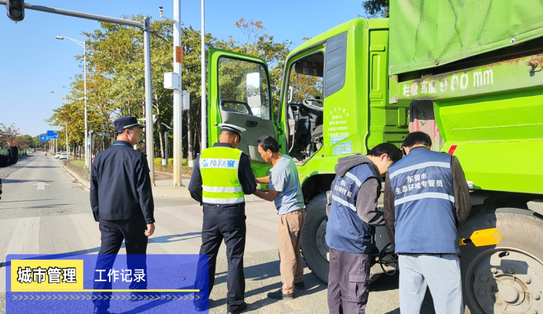 为加强建筑垃圾运输管理,营造整洁、有序的城市环境,12月17日下午,松山湖城管分局联合交警、交通运输、生态环境部门,在生态园月湖路设卡开展清源行动。本次行动执法人员15名,执法车辆6台,在辖区多点设岗,严查运输车辆违法违规行为。