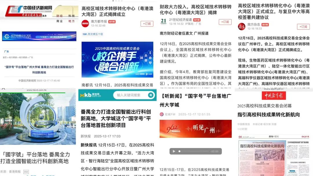 全国高校区域技术转移转化中心(粤港澳大湾区)陆空一体化智能出行分中心落地粤港澳大湾区活力创新轴的重要节点——番禺广州大学城,聚焦新型能源动力、智能网联、低空飞行器3大关键赛道,以“有组织科研、有组织育人、有组织成果转化”为核心使命,高规格构建“中心+节点”高校成果转移转化体系。