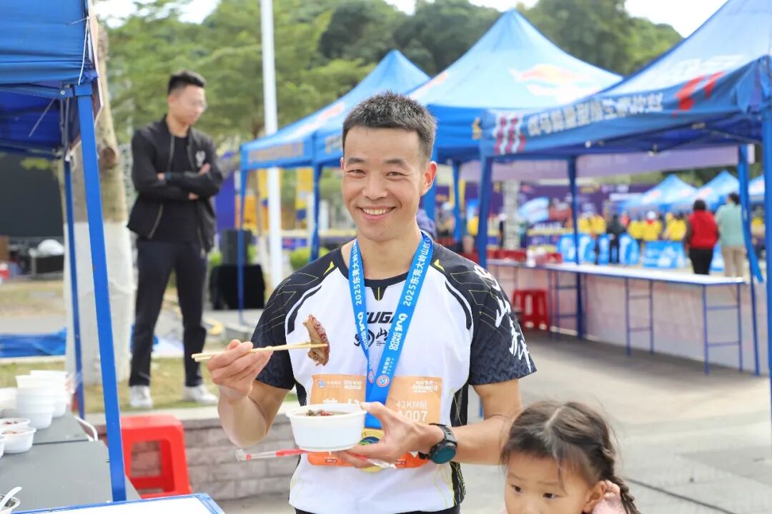 值得一提的是,大岭山荏记烧鹅店暖心助力,特供1000份地道荔枝柴烧鹅濑粉,为完赛选手补充能量、传递岭邑温情。