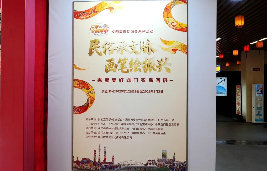 此次农民画展由省委宣传部(省文明办)、惠州市委宣传部(市文明办)、广州市总工会指导,广州市工人文化宫、越秀区新时代文明实践中心、中共龙门县委宣传部联合主办,龙门县精神文明建设办公室、龙门县文化广电旅游体育局承办。展览时间为2025年12月19日至2026年1月3日,市民游客在广州市工人文化宫文化大楼1楼开放时间均可免费入场观展。
