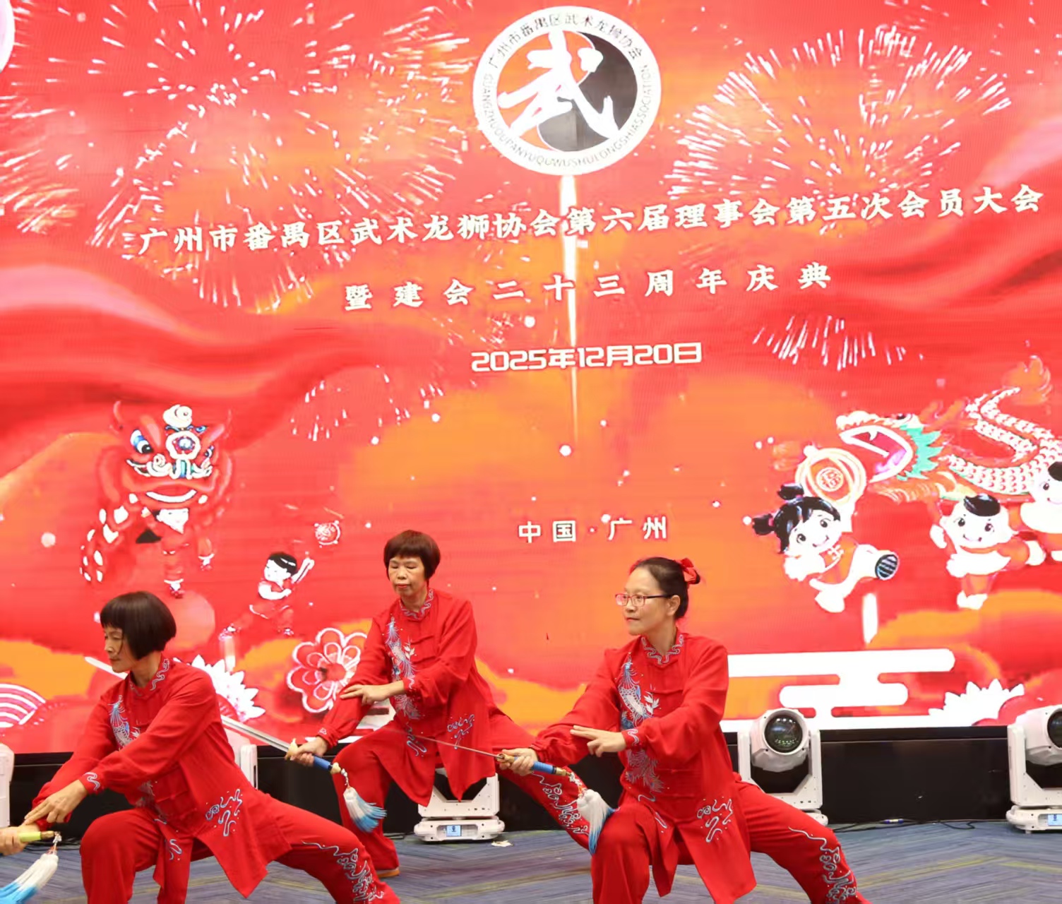 12月20日晚,广州市番禺区武术龙狮协会第六届理事会第五次会员大会暨建会二十三周年庆典活动在市桥黄编骏丰酒家举行,活动现场宣布番禺区武术协会正式更名为“广州市番禺区武术龙狮协会”,标志着番禺龙狮与武术文化传承事业迈入全新发展阶段。