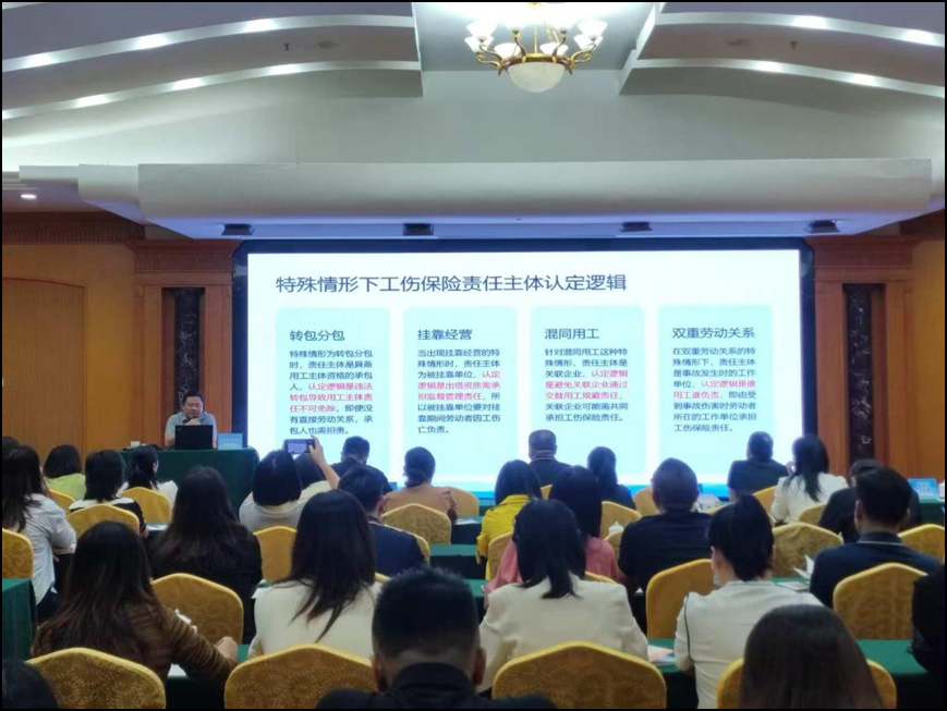 为聚焦企业安全生产关键环节,龙湖区人社局举办了“工伤保险防范专题培训会议”,为辖区88家企业近100名人力资源及安全生产负责人送上精准政策辅导。活动特邀汕头市政府行政复议委员会委员、汕头潮之荣岭海律师事务所连智锋律师,围绕工伤保险相关法律要点开展针对性解读;龙湖区人社局业务领导结合实际案例,重点聚焦建筑行业安全隐患,系统拆解从业人员权责划分、企业违法后果及工伤认定流程等核心政策,并针对参会人员提出的疑问逐一细致答疑。现场还发放了政策宣传手册,切实提升企业对工伤保险政策的理解,夯实工伤预防工作基础,精准解决企业急难愁盼,为企业稳定运营保驾护航。