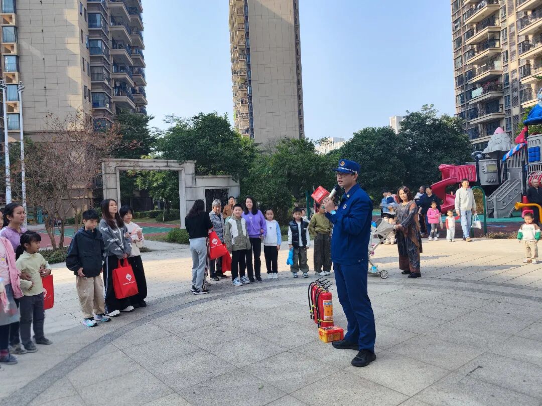 在信鸿嘉誉、江畔湾和华阳湖一号等高层住宅小区,消防宣传员结合近期典型火灾案例,用通俗易懂的语言向住户讲解高层建筑火灾特点、逃生误区、初期火灾扑救方法等核心知识,重点演示了灭火器、消防水带的正确使用步骤,现场指导居民上手操作,纠正不规范动作。随后,随着疏散演练警报响起,住户们在消防指战员引导下,用湿毛巾捂住口鼻,弯腰低姿,沿着安全通道快速有序撤离至小区广场空旷区域,整个疏散过程紧张有序。“这样的演练很实在,不仅学会了用灭火器,更知道火灾来了该往哪跑、怎么跑。”参与活动的王阿姨深有感触地说。