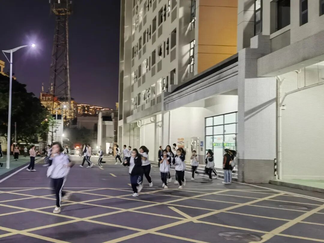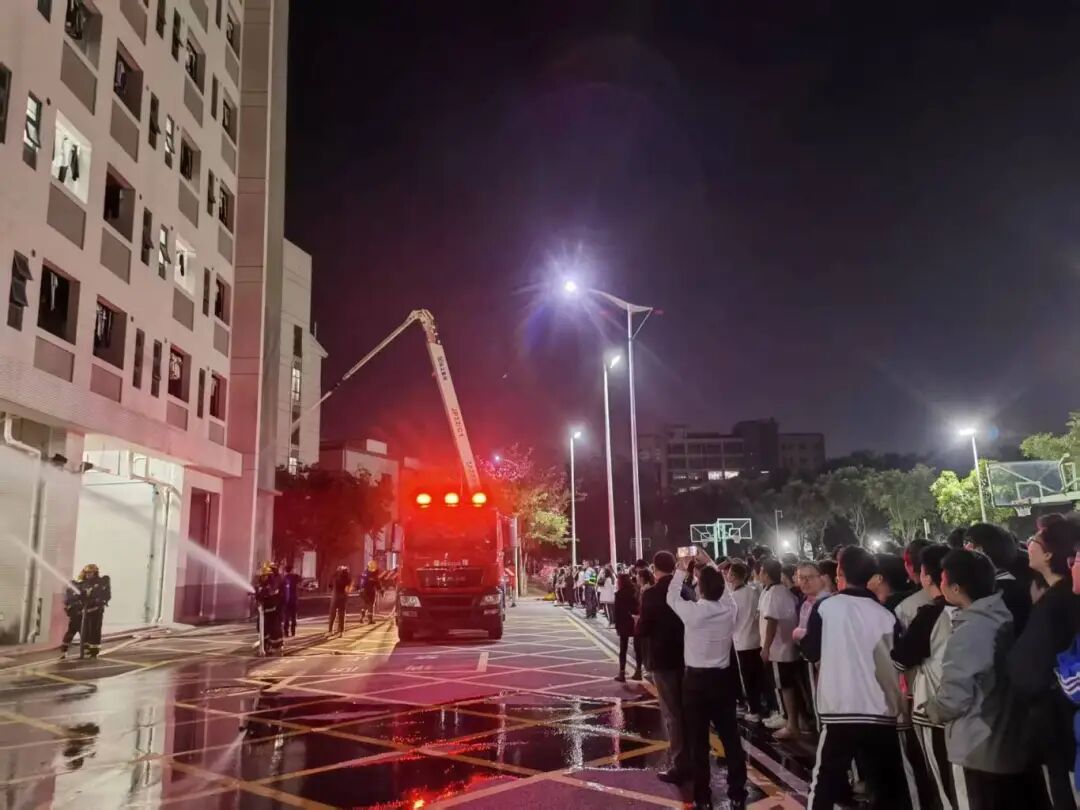 针对学校人员密集、夜间应急处置难度大的特点,镇消防救援大队联合麻涌中学精心策划夜间消防演练。20时许,高层宿舍楼内“火情”突发,应急广播立即响起,值班教师迅速组织学生起床,按照预定疏散路线,手捂口鼻、弯腰前行,安全撤离至操场。消防员现场讲解了夜间火灾逃生的注意事项,强调要保持冷静、辨明方向,避免因慌乱发生拥挤踩踏。同时,通过模拟火场浓烟环境,让学生亲身体验疏散过程,切实掌握逃生技巧。