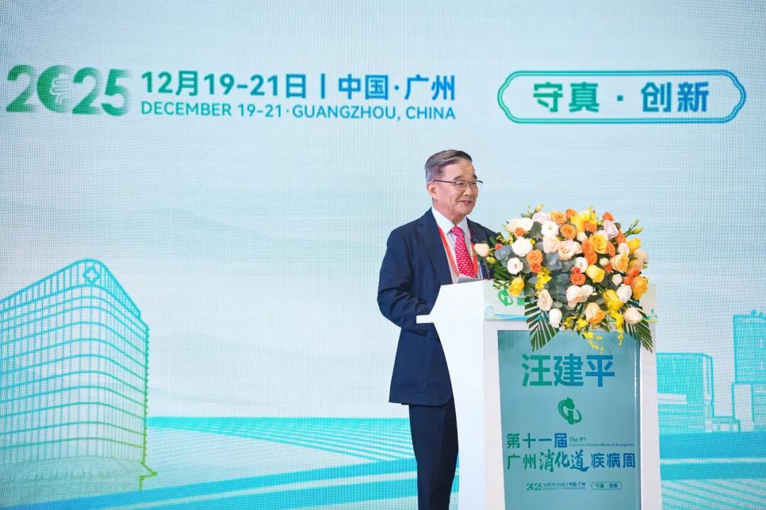 汪建平教授在致辞中分享了他从医48年的感悟,强调医生应始终怀揣对生命的敬畏与孜孜以求的职业态度。他表示,外科医生更需持续精进、复盘每一台手术,在“温故而创新”中实现成长。同时,他从医院管理者角度指出,医学事业如接力传承,新一代必将超越前人,老一辈更应以开放胸怀支持后辈。最后,他期待与会者都能在本届消化道疾病周中收获启发,继续携手为人类健康事业破局开新。