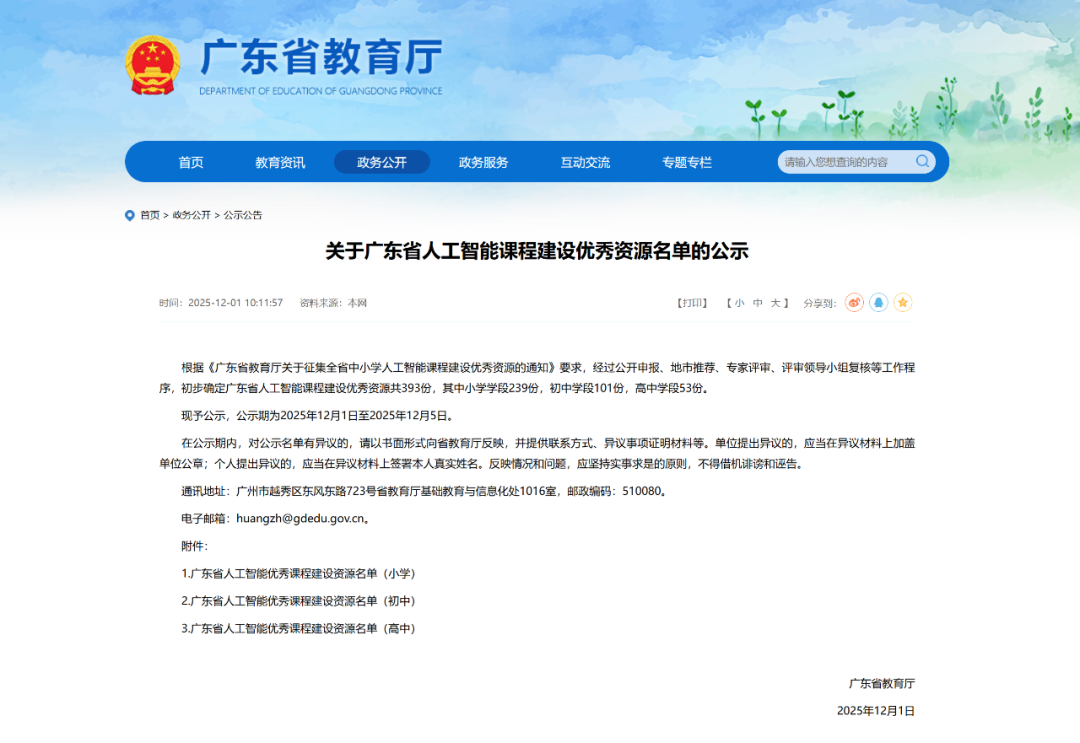 近日,广东省教育厅发布《关于广东省人工智能课程建设优秀资源名单的公示》,经过公开申报、地市推荐、专家评审、评审领导小组复核等多轮严格筛选,广州软件应用技术研究院(简称:广州软件院)人工智能实验室自主研发的人工智能课程成功入选初中学段优秀资源名单!