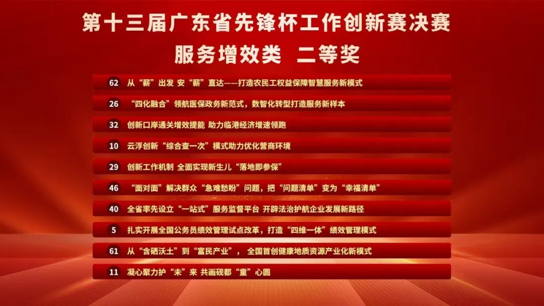 近日,《云浮创新“综合查一次”模式助力优化营商环境》项目,在第十三届广东省“先锋杯”工作创新赛决赛中荣获服务增效类别二等奖,这是该创新实践继今年夺得全国‘法治政府奖’、入选全国依法平等保护民营企业和企业家合法权益协同实践案例后,再次获得省级殊荣。