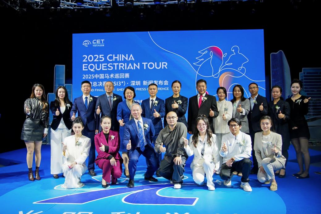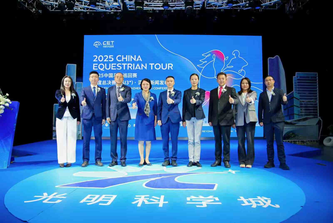 2025年12月24日下午,2025 中国马术巡回赛(CET)年度总决赛(CSI3*)新闻发布会在深圳市光明区融媒体发布中心举行。中国马术协会秘书长钟国伟,中国马术协会副秘书长兼竞赛部部长孙立生,深圳市文化广电旅游体育局一级调研员朱艳,深圳市光明区人民政府副区长彭颖,深圳市光明区文化广电旅游体育局局长徐位毅,广东省马术协会常务副会长陈广新,以及赛事承办方希奥体育创始人兼CEO陈琦等领导嘉宾出席发布会,与品牌合作伙伴代表、行业嘉宾及媒体共同见证中国马术年度最高规格赛事之一正式进入倒计时阶段。