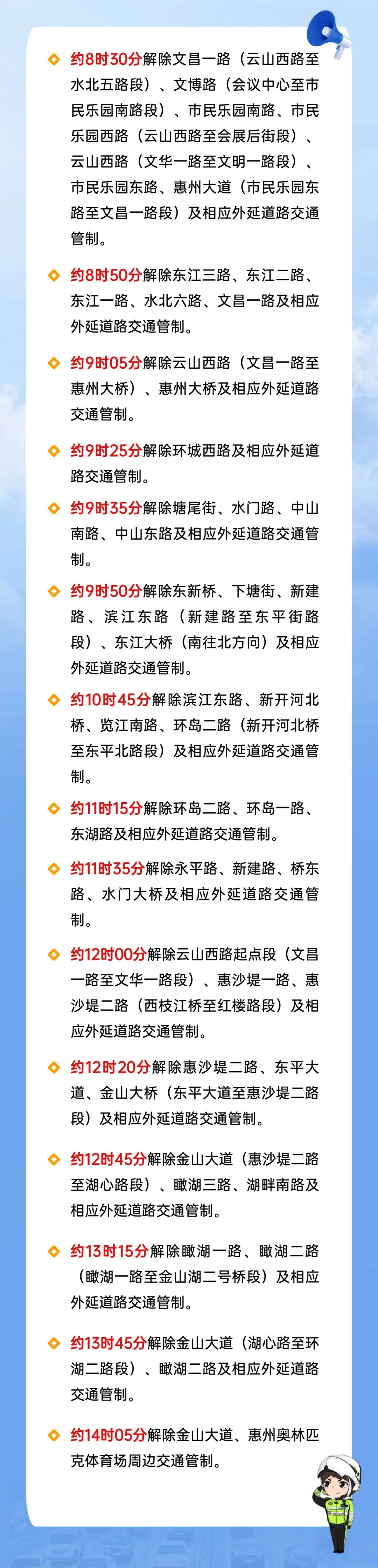 视情况调整交通管制时间及措施